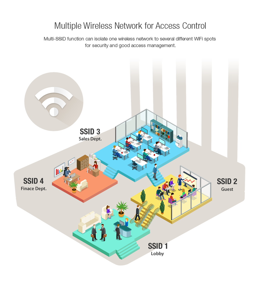 - Multi-SSID allows user to create multiple SSIDs according to their needs.
